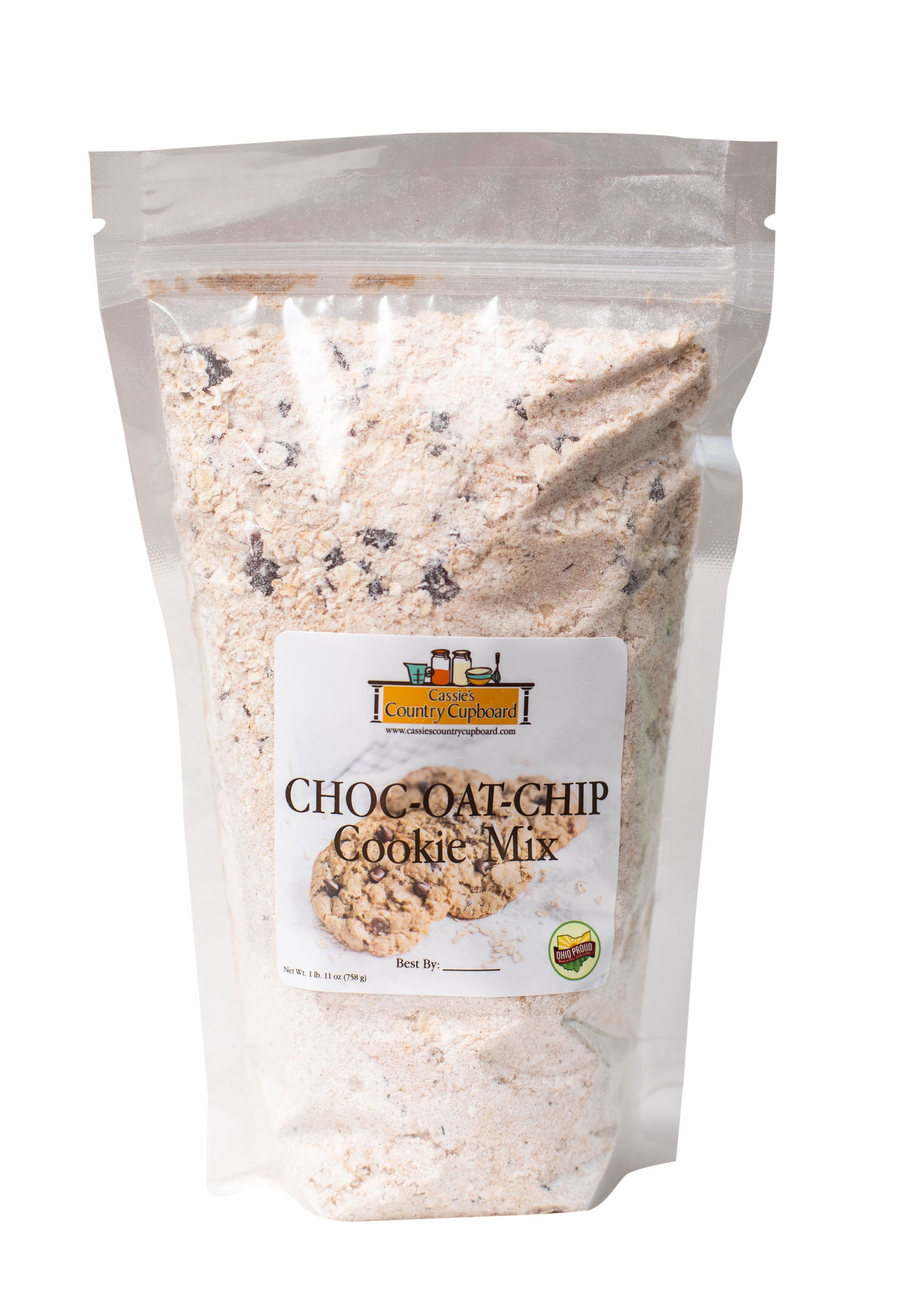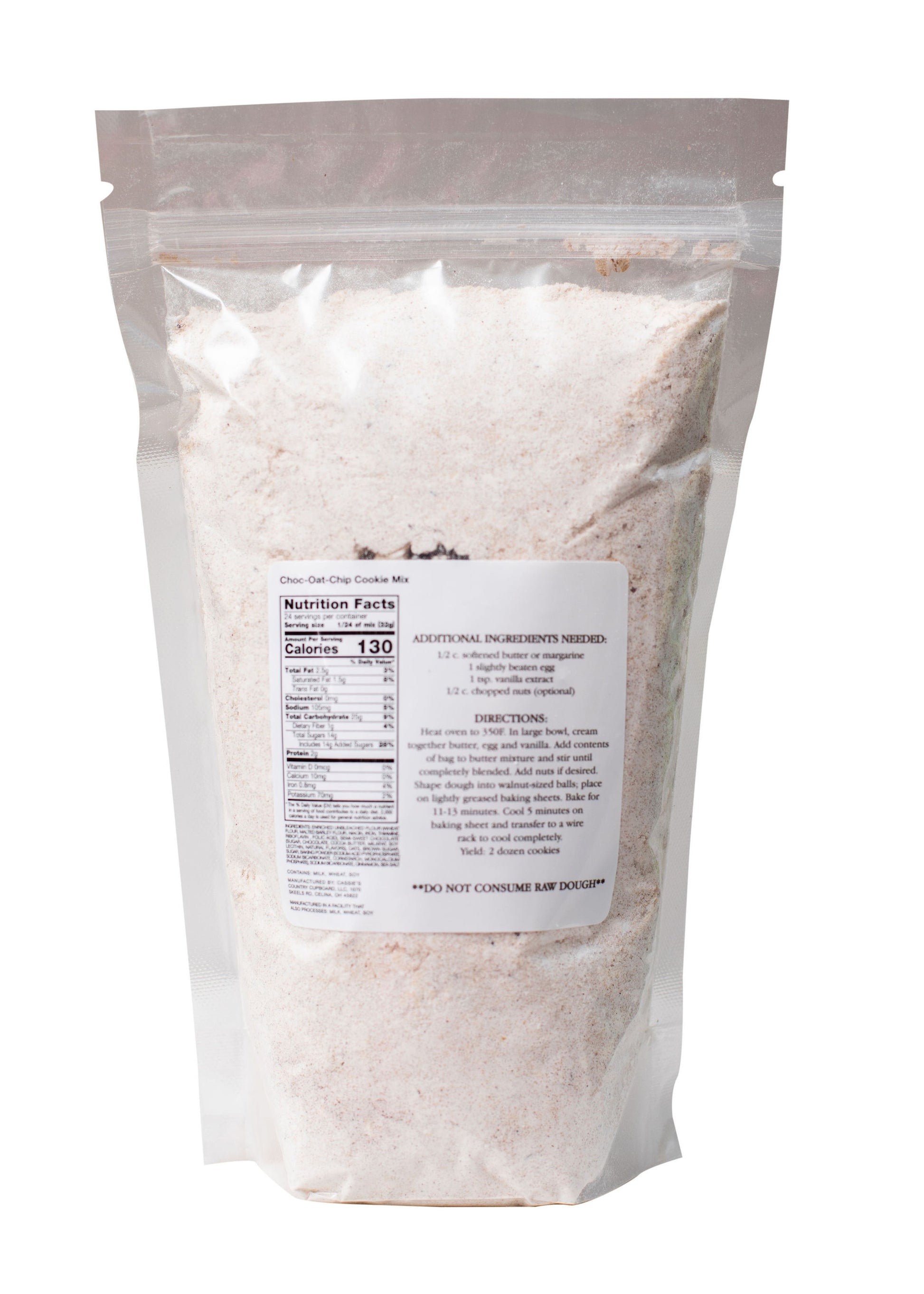 Customer favorite! A delicious fusion of your favorite oatmeal cookie and chocolate chip cookie with a touch of cinnamon. Just add butter, egg, and vanilla! Makes 2 dozen.